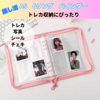 バインダー シール帳 コレクトブック A5 6リング 6穴 バ9 中表紙 トレカケース ラメ クリア トレカ ファスナー インスタ グッズ収納 チェキ 韓国 KPOP