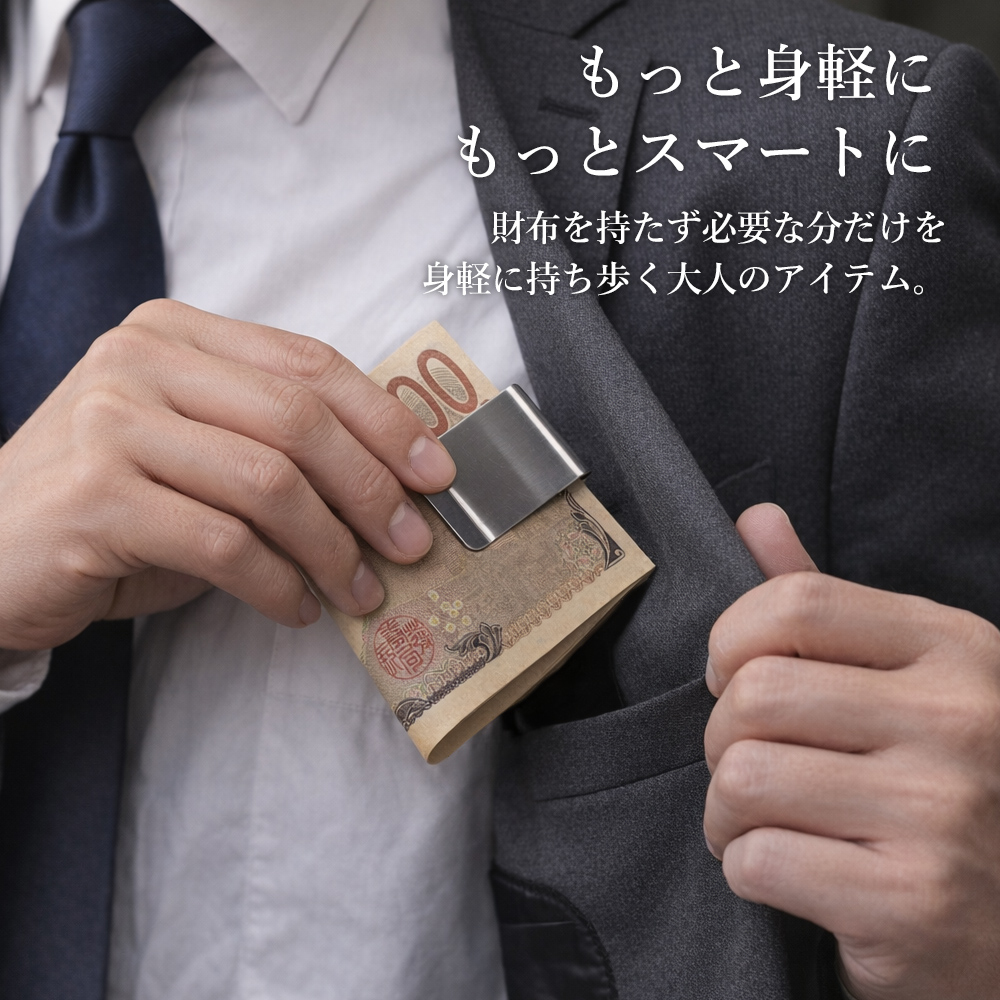 薄型でスマートなデザインが特徴。名入れステンレス製マネークリップは、ポケットやバッグの中でもかさばらず、スタイリッシュにお札を持ち歩くことができます。コンパクトながらしっかりホールドする設計の名入れステンレス製マネークリップは、ミニマルな財布代わりとしても人気の高いアイテムです。