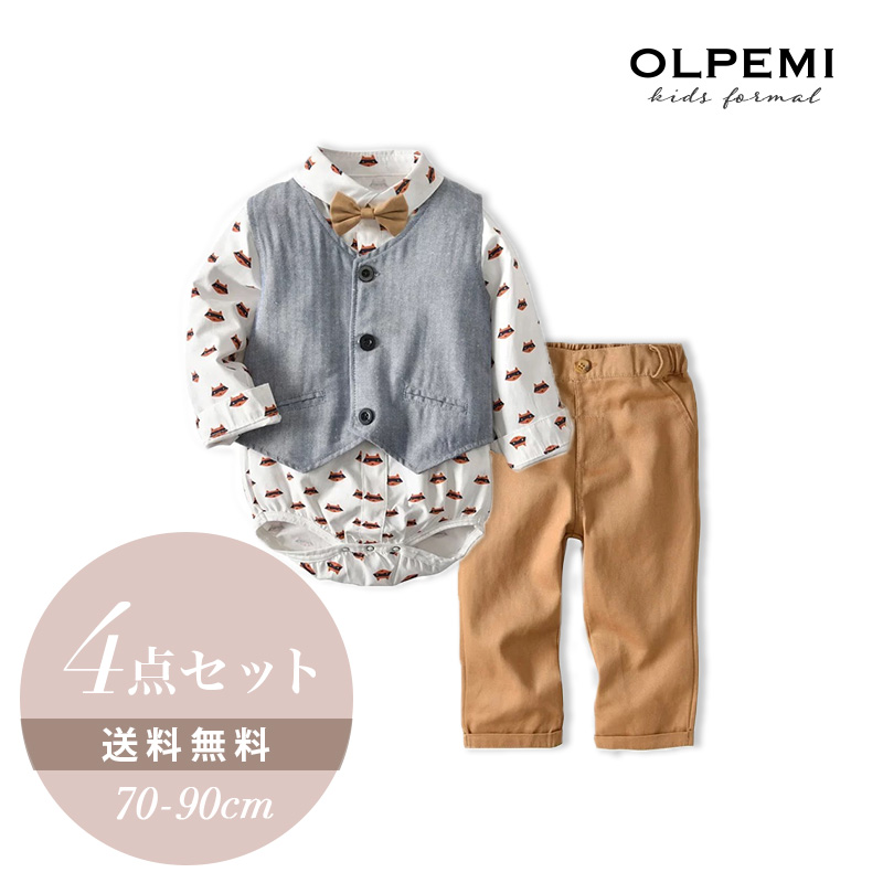 ベスト・ズボン・シャツロンパース・蝶ネクタイのお得な4点セット。