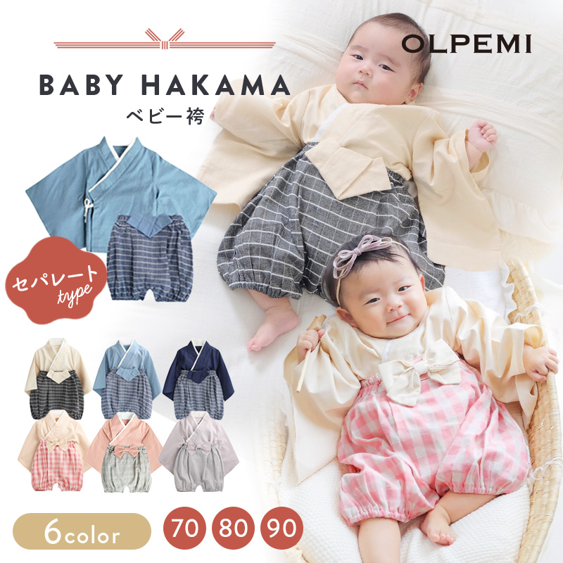 ベビー 袴 ベビー服 赤ちゃん 男の子 女の子 セパレート 百日祝い お食い初め お宮参り 着物 バースデー 70 衣装 はかま