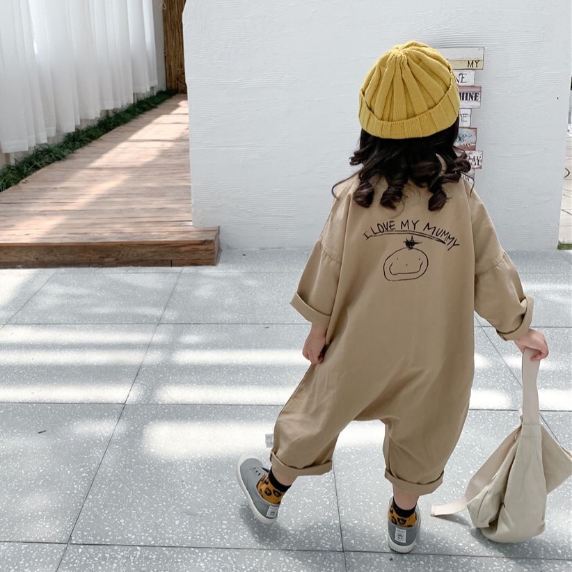 キッズ 子供 ジュニア 秋 サロペット オールインワン オーバーオール かわいい おしゃれ パンツ ベージュ バックプリントオールインワン I011