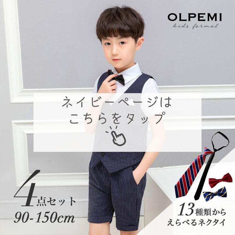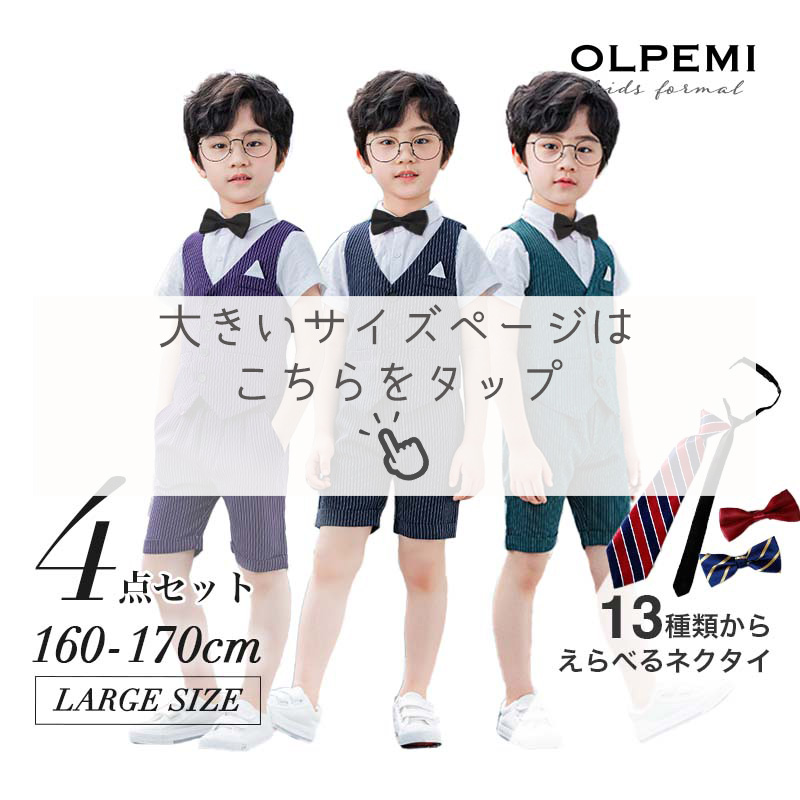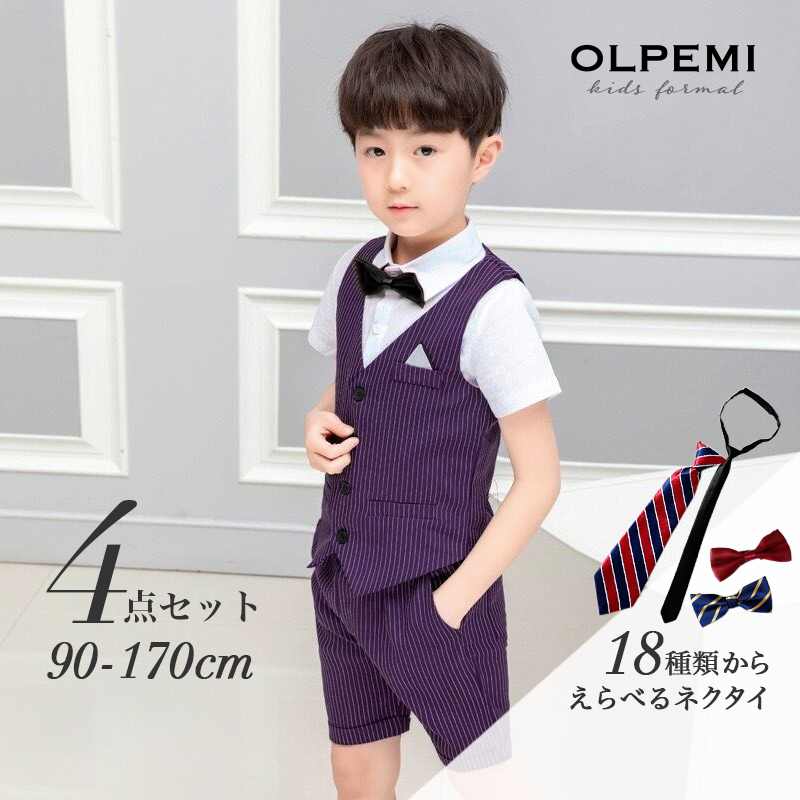 ベスト、半ズボン、半袖シャツ、選べるネクタイの4点セット。