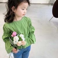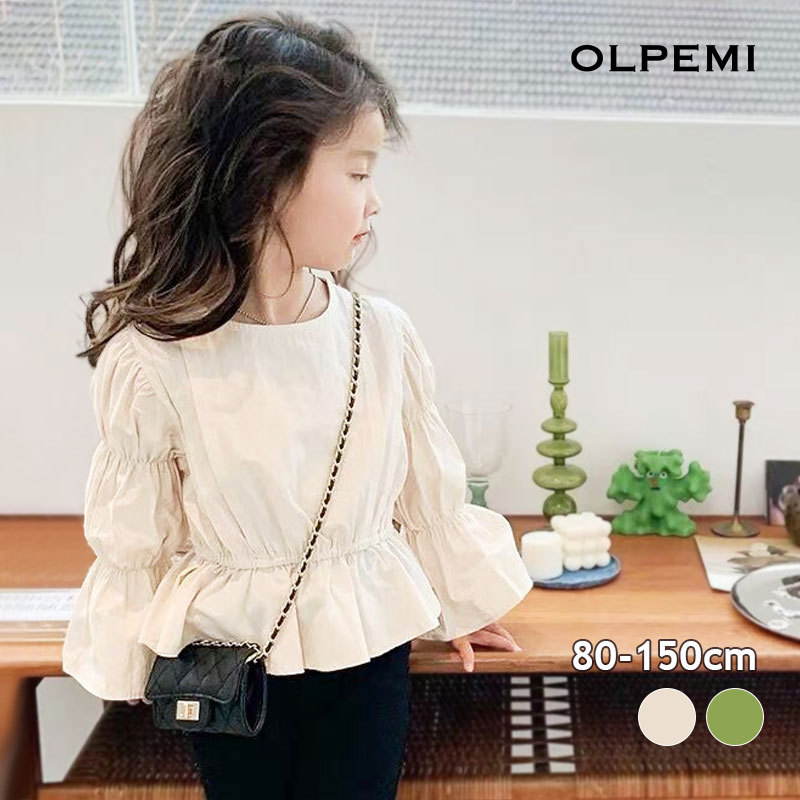 キッズ ブラウス 子ども ベビー 長袖 女の子 シャツ 韓国子供服 フリル トップス かわいい 秋 春 へプラム ジュニア 高学年 パフスリーブ 無地 シンプル カジュアル 女児 通園 通学 お出かけ 姉妹 お揃い リンクコーデ おしゃれ 小学生