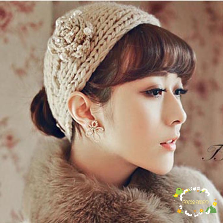 お花のモチーフがかわいいニットターバン。