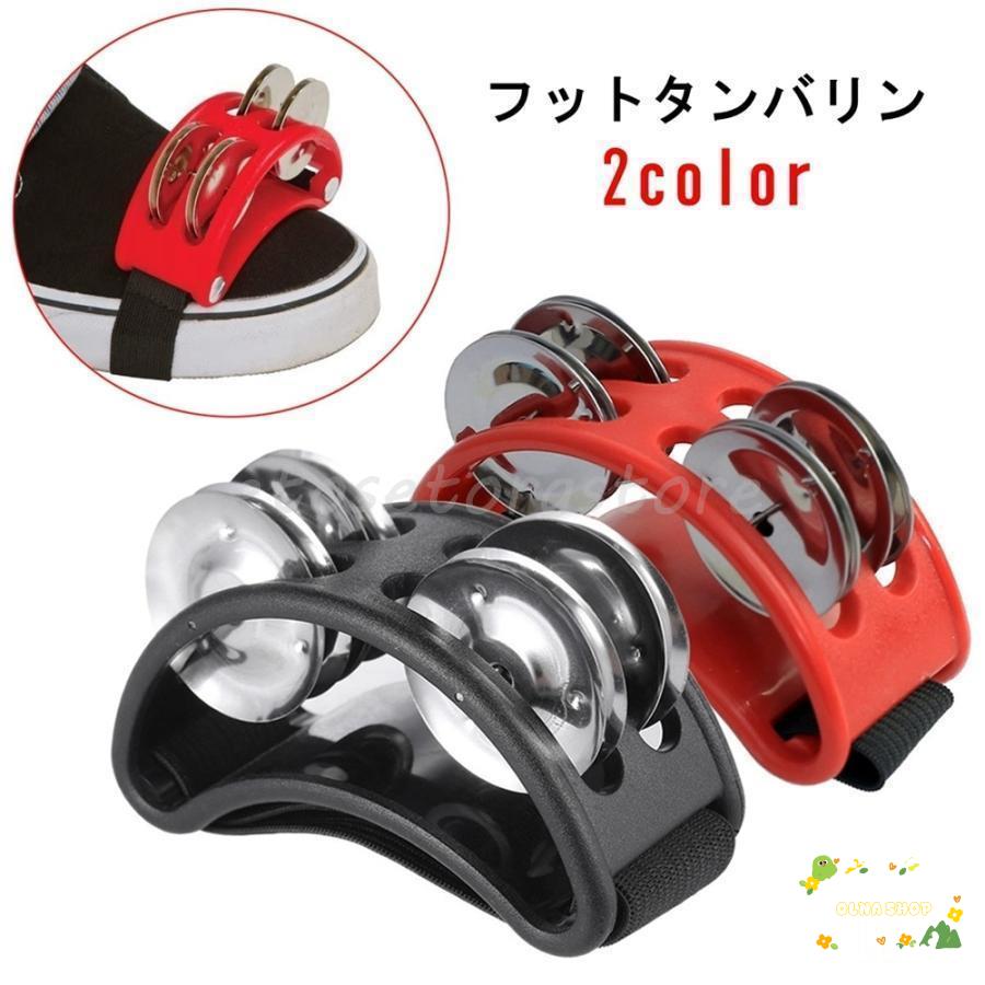 フットタンバリン フットパーカッション フットタンブリン 足用タンバリン 足タンバリン 楽器 半円 半月型 ゴムバンド レッド ブラック シンプル カ