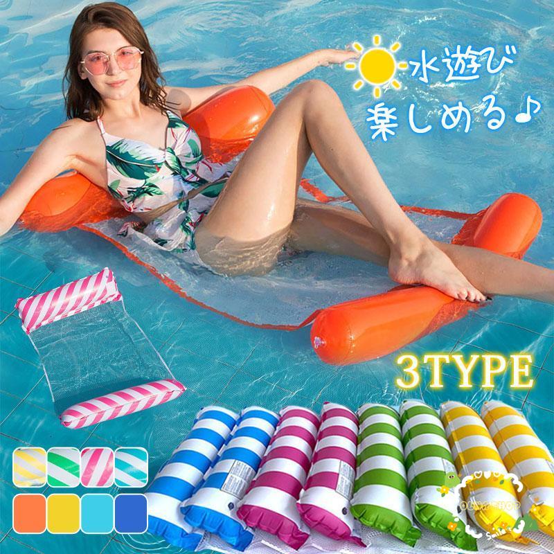 浮き輪 フロートマット 大人用 ハンモック 水上 夏 ストライプ 海水浴 水遊び プール ビーチ かわいい おしゃれ 背もたれ 浮き具 海