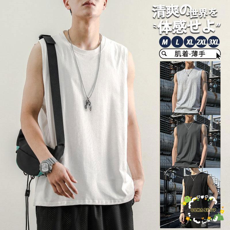 タンクトップ メンズ インナー 薄手 肌着 下着 Tシャツ カットソー カジュアル アンダーウェア シームレス ノースリーブ Vネック シャツ カットオフ