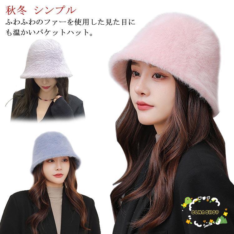 バケットハット ファー 帽子 レディース 短毛ファー フェイクファー 秋 冬 全12色 バケハ ハット 黒 白 もこもこ 防寒 あったか 厚手 小顔効