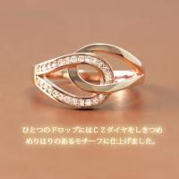 レディース アクセサリー キュービックジルコニアダイヤモンド 誕生石 4月 幅広 ワイドリング 18金 18kコーティング k18GP ファッションリング 雫 しずく チャーム シンプル モチーフ 人差し指 中指 薬指 重ね着け 重ねづけ 重ね付け PG デザイン