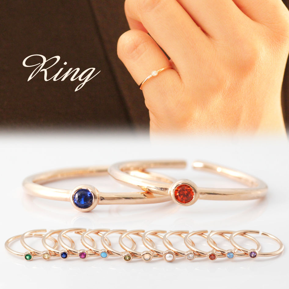 ピンキーリング 指輪 レディース 誕生石 カラー 小さい 一粒 リング サイズ調整可能 18金 18kコーティング ピンクゴールド K18GP