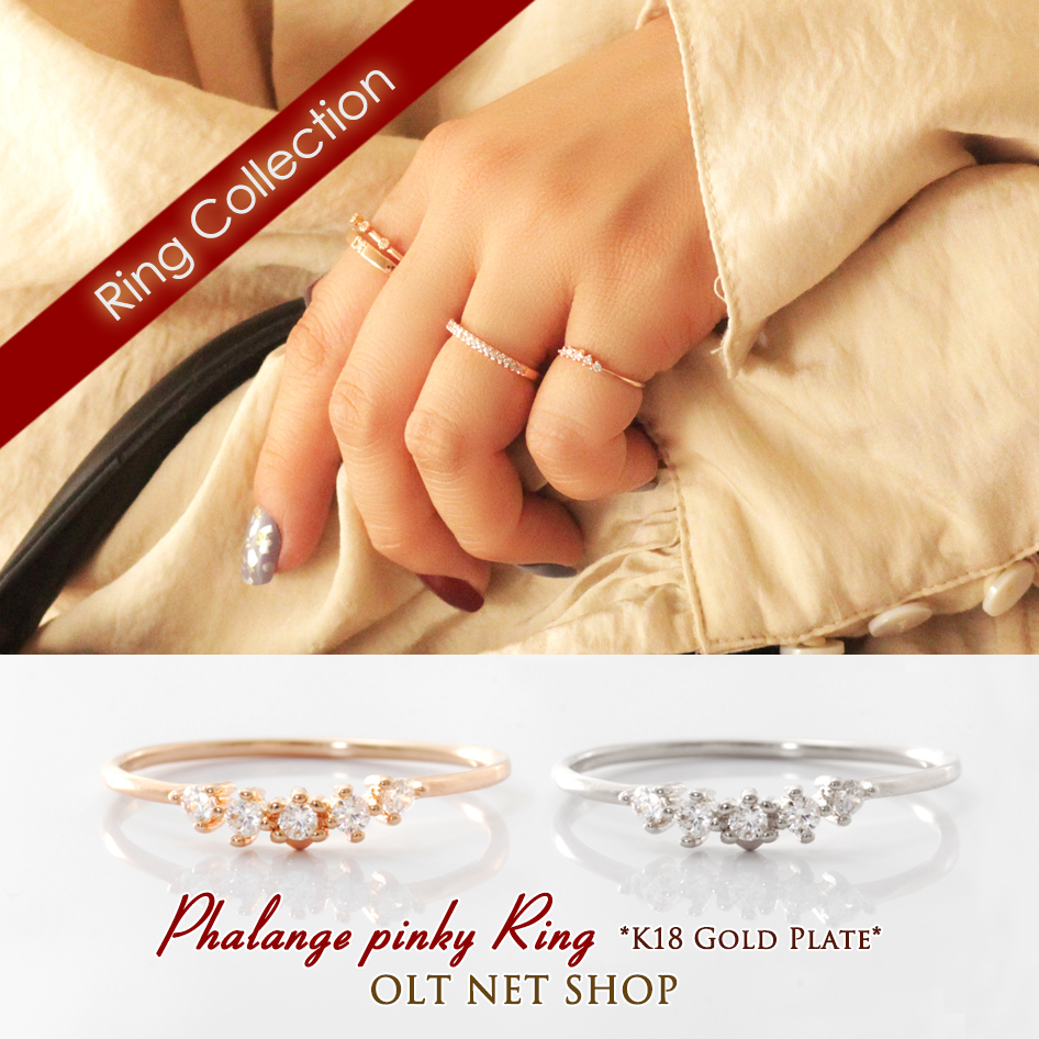 ピンキーリング 指輪 ファランジリング レディース ミディ リング シンプル 18金 18kコーティング ピンクゴールド シルバー K18GP