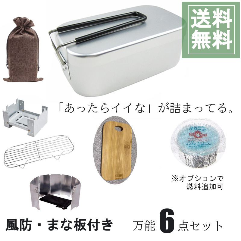 メスティン 飯盒 飯ごう アウトドア キャンプストーブ 風防 まな板 付き6点 セット 収納袋 ライスクッカー アウトドア アルミ キャンプ 自宅炊飯 防災対策