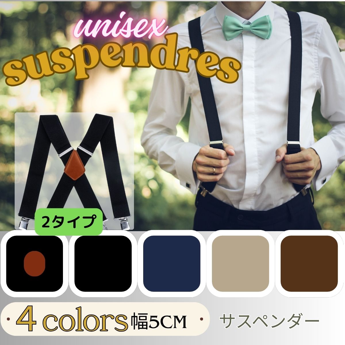 サスペンダー メンズ 吊りバンド レディース 金具 クリップ 幅広 太め 50mm タキシード おしゃれ 大人 ビジネス カジュアル ゴム