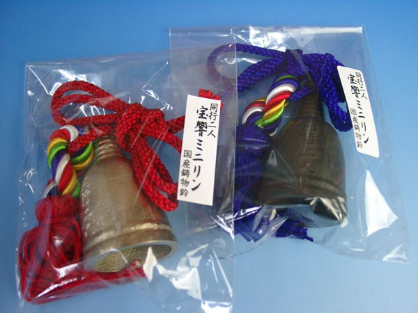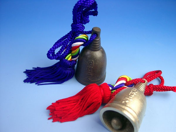 山谷袋に結べる便利なひも付き鋳物製の持鈴です。