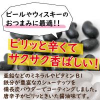 真っ黒なカシューナッツです。カシューナッツを伝統的な豆菓子作りで香ばしく仕上げました。カシューナッツを香ばしい備長炭パウダー入りの衣で包みました。