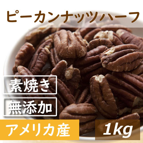 ナッツ専門店の 素焼きピーカンナッツ ハーフ 1kg 送料無料 製造直売 無添加 無塩 無植物油 業務用 グルメ みのや
