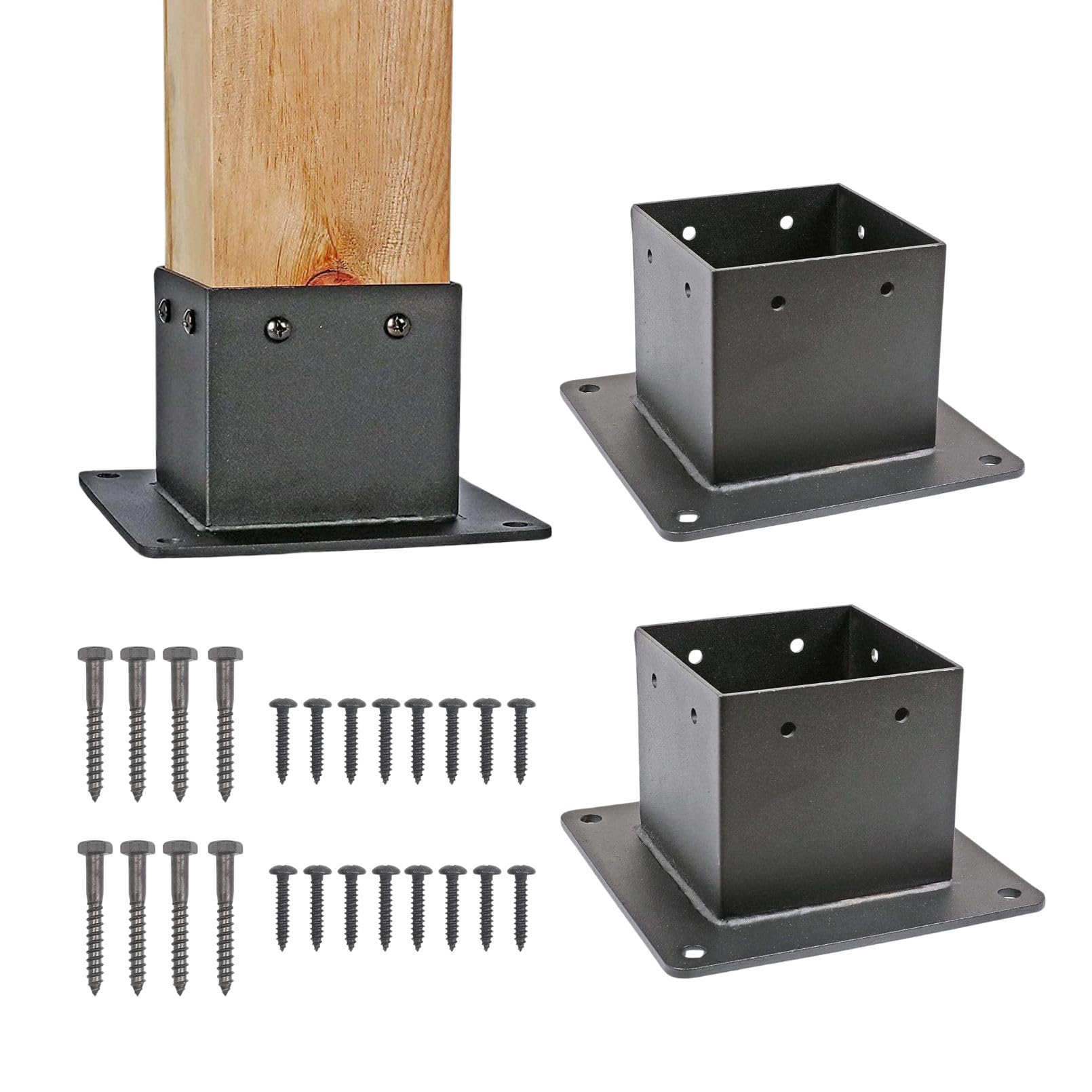 支柱固定金具 90ミリ角柱は、簡単設置でDIY初心者も安心:ウッドデッキやラティス、パーゴラ、テラスの支柱を簡単に固定できる金具セット。初心者でもスムーズに柱を設置可能で、プロのような仕上がりを実現できる柱固定金具のセットです。