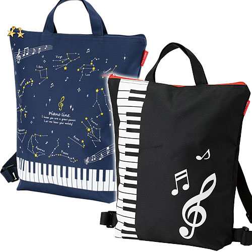 2wayリュックバッグ(鍵盤柄)[Pianoline]【音楽トートバッグ】【有料名入れ可】
