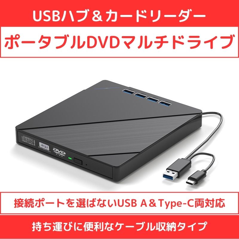 USBハブ&カードリーダー ポータブルDVDマルチドライブ
