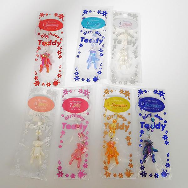 誕生月のテディベアのビーズストラップ。