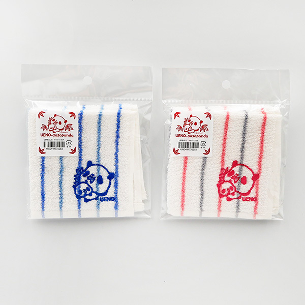 上野笹ぱんだ タオルハンカチ 2枚セット (青・赤)