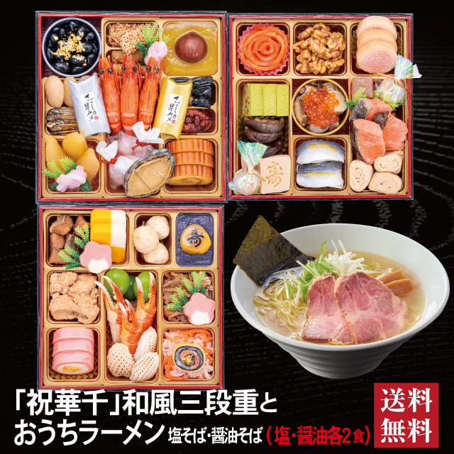 おせち 2026 ラーメンセット 「祝華千」 冷蔵 6.5寸 三段重 全41品 3人前 「おうちラーメン」 送料無料 千賀屋