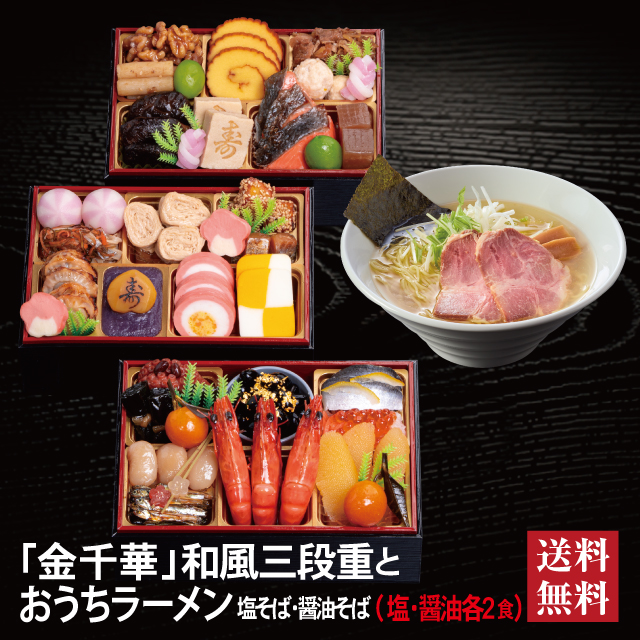 おせち 2026 ラーメンセット「金千華」 冷蔵 長方形 三段重 全33品 2人前 3人前 「おうちラーメン」 送料無料 千賀屋