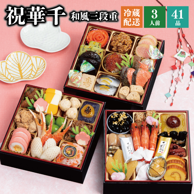 おせち おせち料理 2026 予約 冷凍 千賀屋謹製 「祝華千」 和風 三段重 3人前 全41品 6.5寸 お節 千賀屋 送料無料 2025 御節 おせち料理 爆買