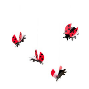 4匹のテントウムシが羽を広げて飛んでいる様子をモチーフとしたモビールです。白い壁紙にも赤色があざやかに映え、見る人を明るい気持ちにさせてくれます。子ども部屋はもちろんのこと、窓辺や植物の近くに飾るのもオススメ。