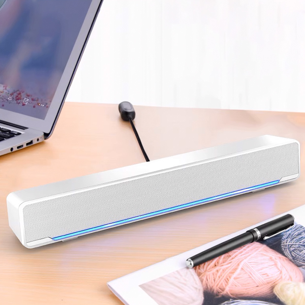 【ホワイト】ブルーライトサウンドバースピーカースピーカー サウンドバー pc テレビ 手元 有線 小型 usb 3.5mm 高音質 高級 かわいい コスパ