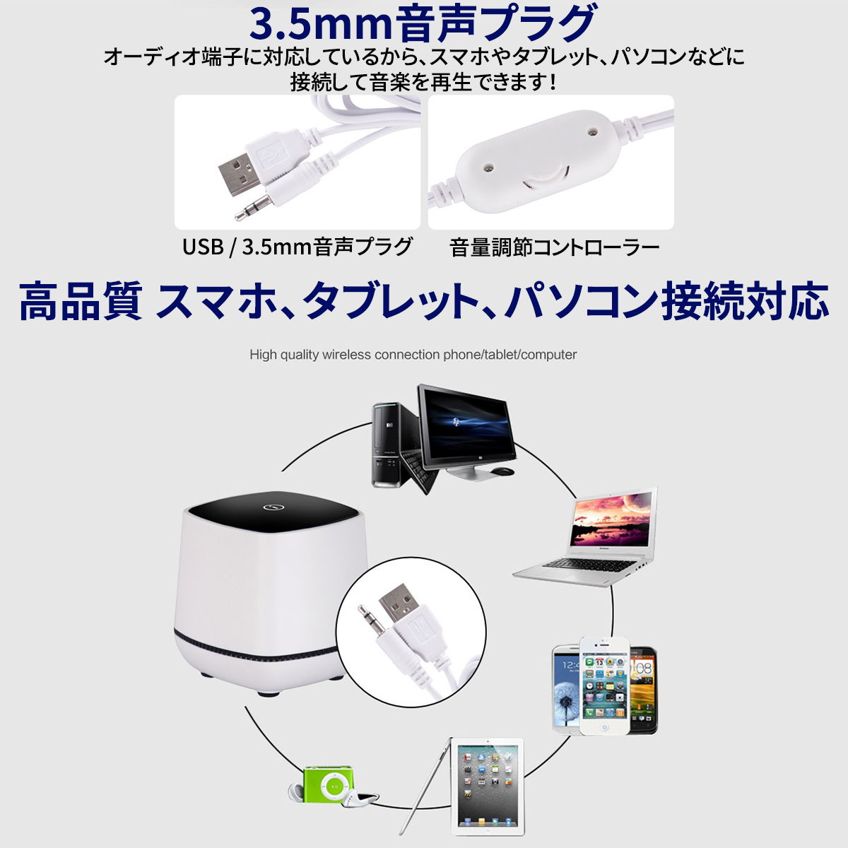 PCやスマホipad等、3.5mm音声プラグの接続できる機器でしたら、