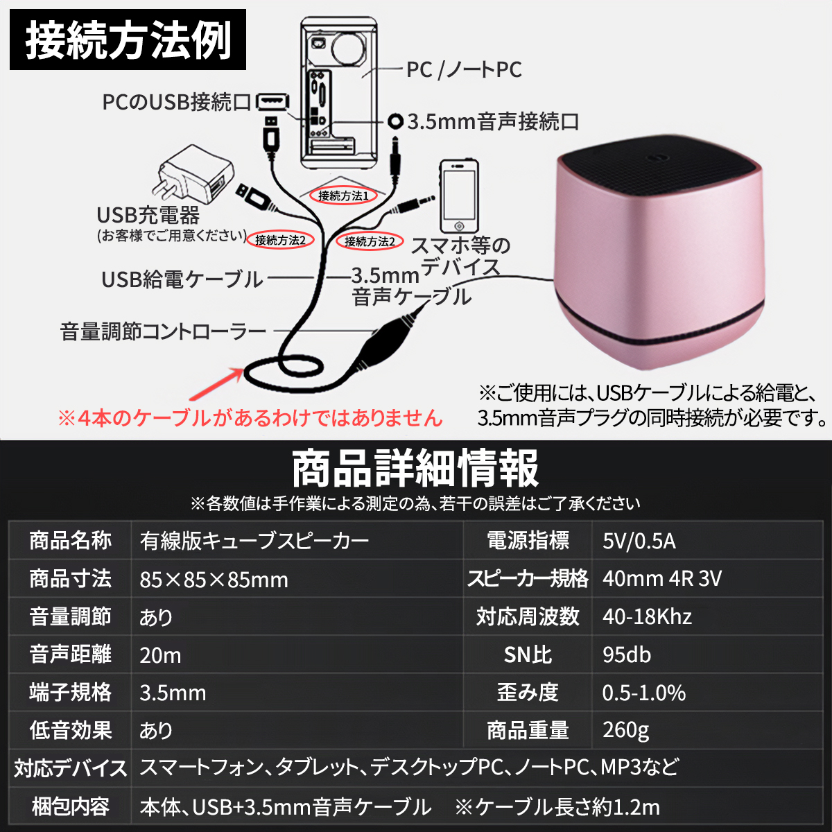 商品名:有線キューブスピーカー