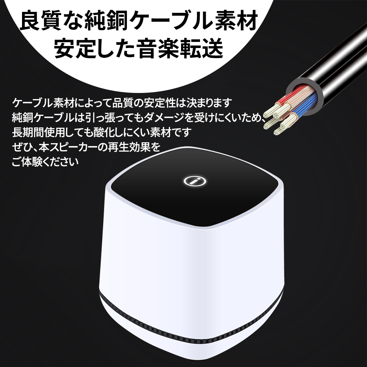 ケーブルは良質な純銅ケーブル素材使用の為、高品質なサウンドをお楽しみいただけます。