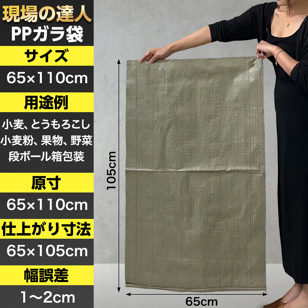 現場の達人 ガラ袋 厚手 65 5 110 土のう 土のう袋 土嚢 土嚢袋 代わり ホームセンター 砂 対候性 防水 耐久 機 多種サイズ 緊急 防水防止 網袋 編み込み バッグ