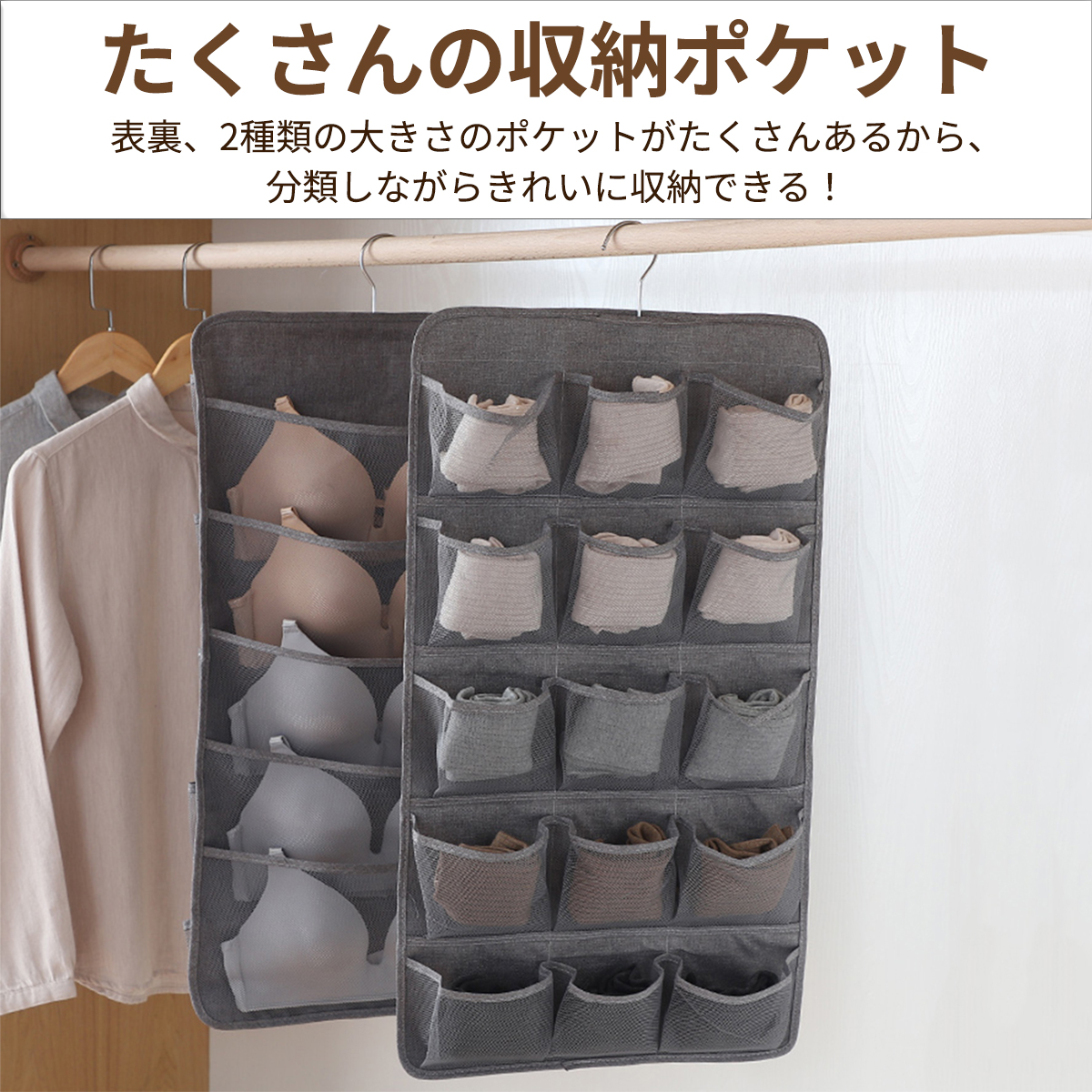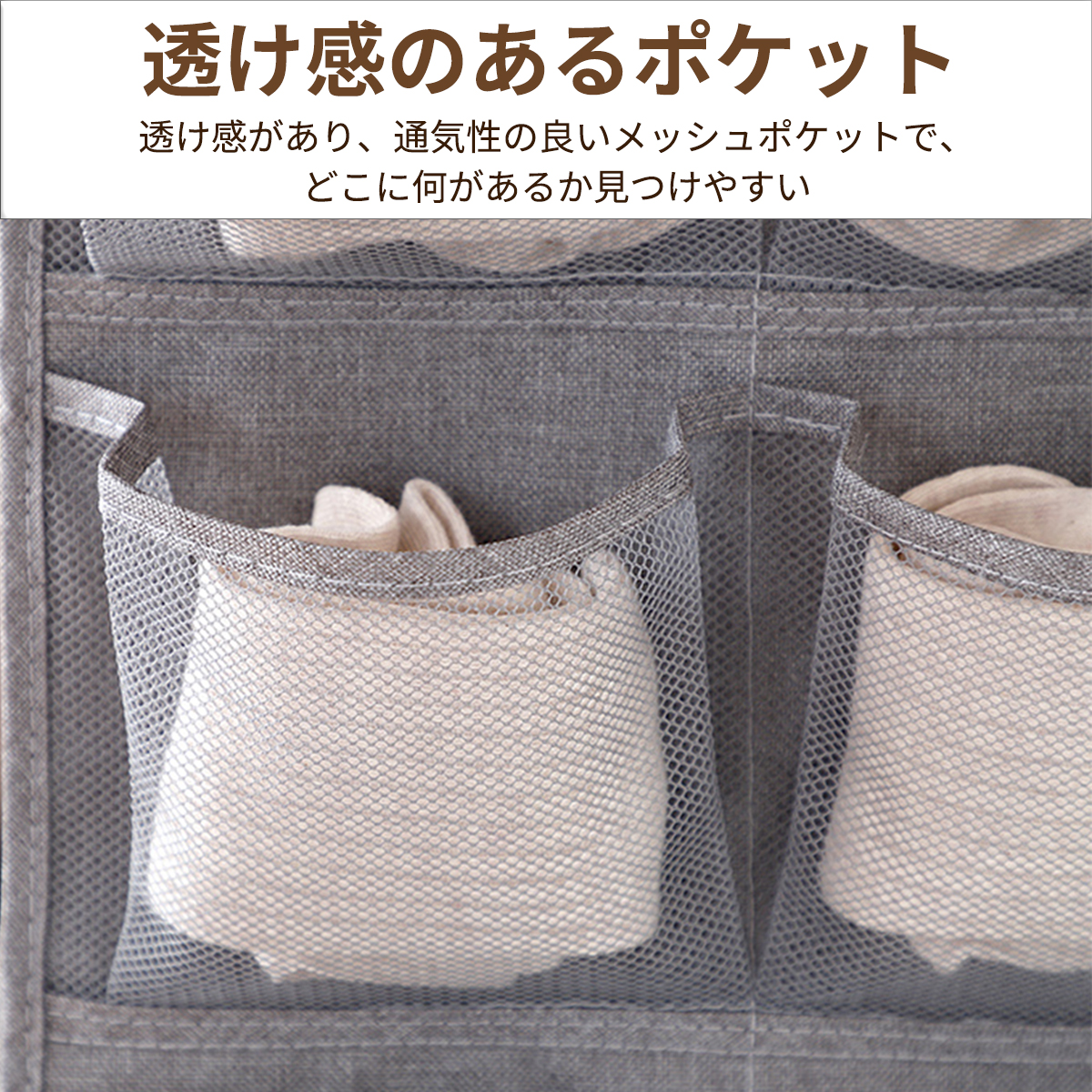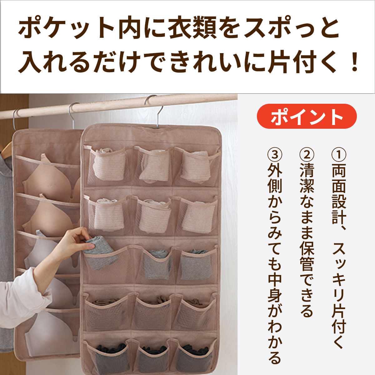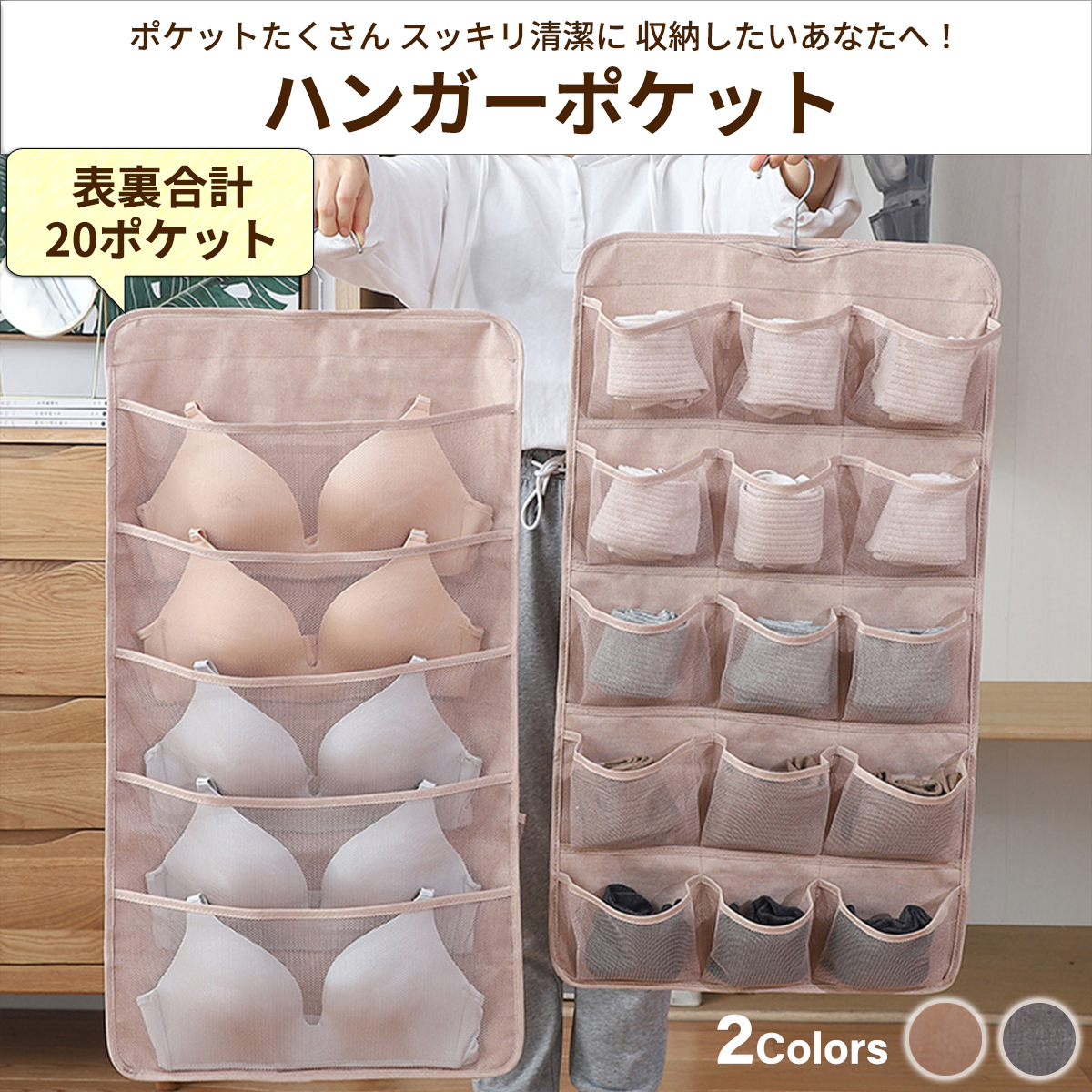 ウォールポケット クリア 北欧 下着 大容量 靴下 ハンガー ポケット 収納 仕切り ハンガー式 吊り下げ ブラの型崩れ防止 ブラケース 衣類 20ポケット 両面
