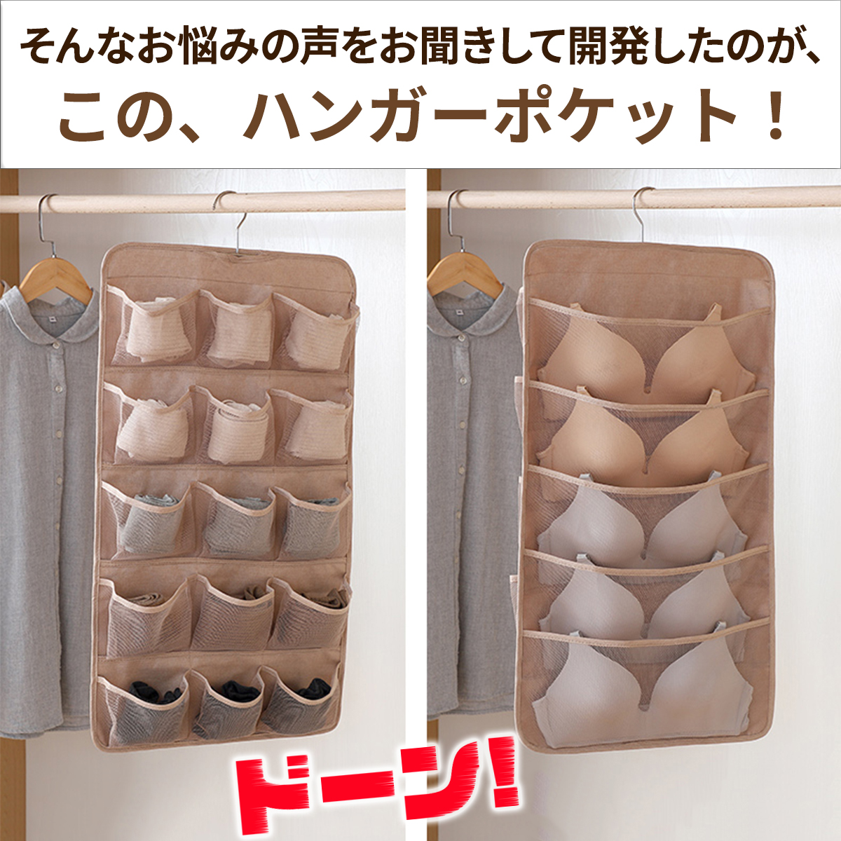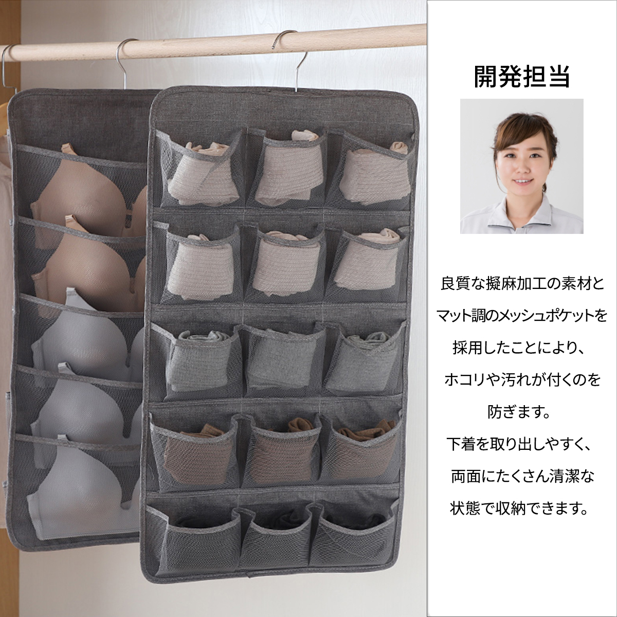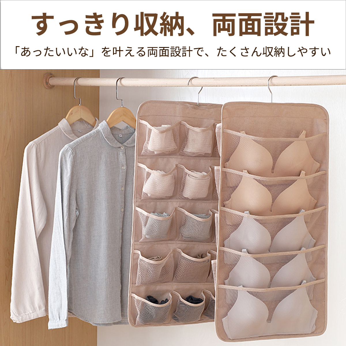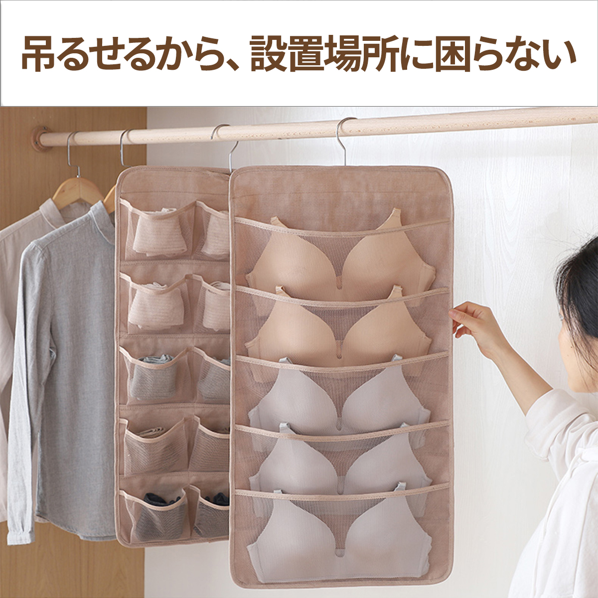 ウォールポケット クリア 北欧 下着 大容量 靴下 ハンガー ポケット 収納 仕切り ハンガー式 吊り下げ ブラの型崩れ防止 ブラケース 衣類 20ポケット 両面