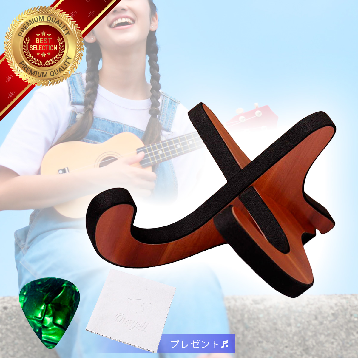 ウクレレスタンド 2本 OTOYELL 木製 折りたたみ コンパクト おすすめ かっこいい 木 組み立て 携帯 軽量 小型 省スペース スリム スポンジ 倒れない 立て掛け