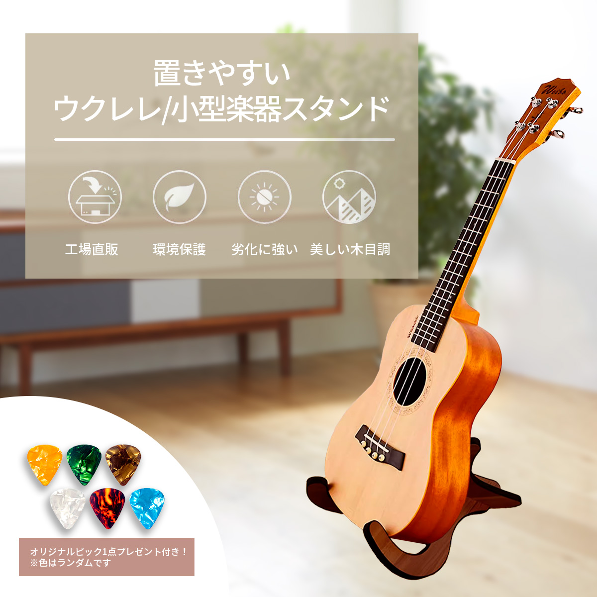商品名:置きやすいウクレレ・小型楽器スタンド