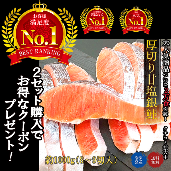 \対象商品2個購入で500円引/厚切り甘塩銀鮭 至高グルメ 送料無料 約1000g 冷凍 銀鮭 50代 60代70代 80代 ギフト 2025 お歳暮 爆買