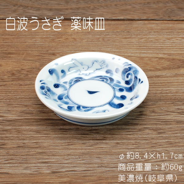白波うさぎ 薬味皿 / 食器 小皿 薬味皿 珍味皿 お手塩皿 そば用品 うさぎ柄 美濃焼