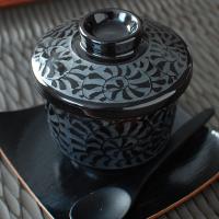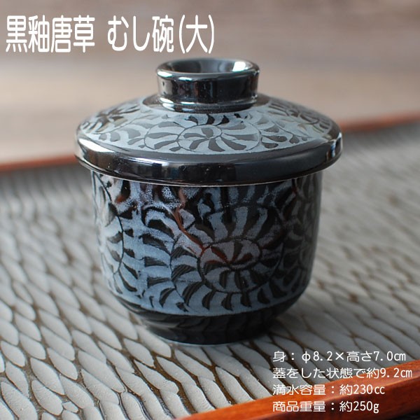 黒釉唐草 むし碗 (大) / 食器 茶碗蒸し 蒸碗 蓋物 デザートカップ 電子レンジ可 食洗器可 業務用 営業用 自宅用 美濃焼 ※画像の備品は付属しません