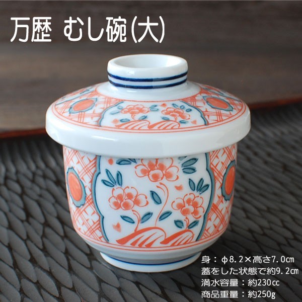 万歴 むし碗 (大) / 食器 茶碗蒸し 蒸碗 蓋物 デザートカップ 電子レンジ可 食洗器可 業務用にも 美濃焼 ※画像の備品は付属しません