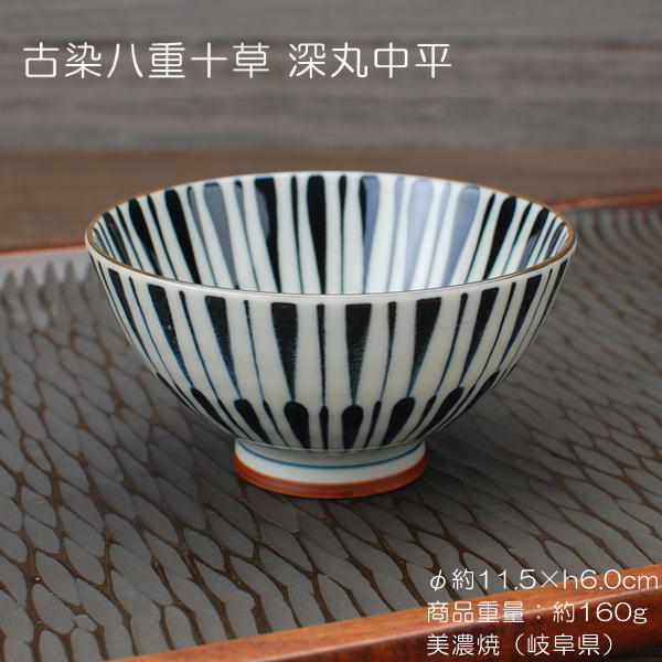古染八重十草 深丸中平 / 食器 ご飯茶碗 飯碗 中平 染付 十草柄 美濃焼