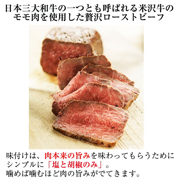 日本三大和牛の一つとも呼ばれる米沢牛のモモ肉を使用した贅沢ローストビーフです。