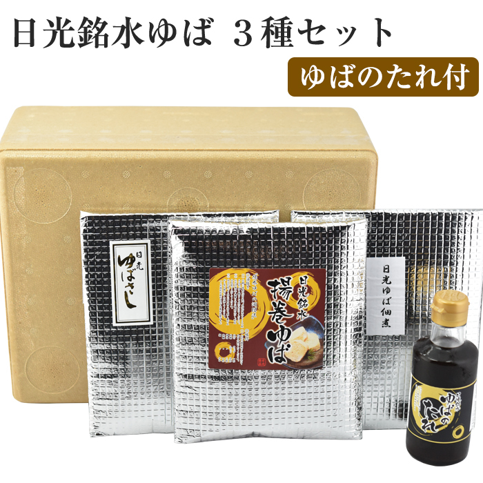 日光ゆば 3種セット 専用タレ付き ゆばさし 揚巻ゆば ゆば佃煮 ゆばのたれ ゆば ギフト 日光銘水・国産大豆100%使用 手作り 日光食品 のし対応可