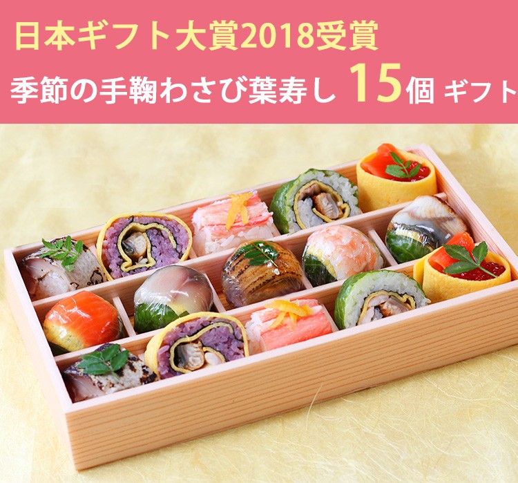 あでやか手鞠わさび葉寿し 15個 ギフトセット 寿司/日本ギフト大賞2018受賞/梅守本店
