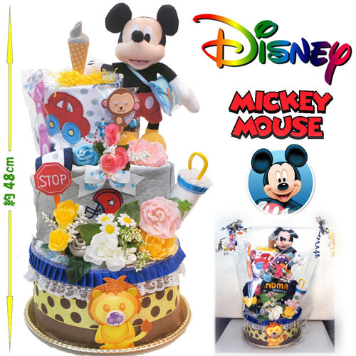 おむつケーキ ミッキーマウス (US Disney Store 正規品) ディズニー 男の子 出産祝い 可愛いミッキー パンパース 46枚 3段E