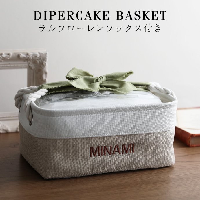 出産祝い おむつケーキ バスケット ラルフローレン POLO RALPH LAUREN ベビーソックス 男の子 女の子 名入れ ギフトセット くすみカラー