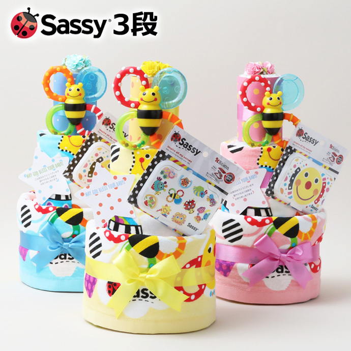 おむつケーキ オムツケーキ 出産祝い 出産祝 Sassy 身長計付きバスタオル 3段 おむつケーキ
