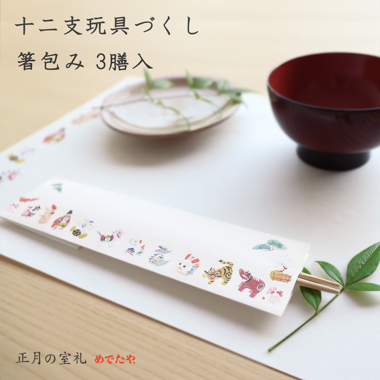 祝箸 おしゃれ 和紙 国産 日本製 お正月 切り絵 干支 お食い初め 初節句 端午の節句 十二支玩具づくし 箸包み 3膳入